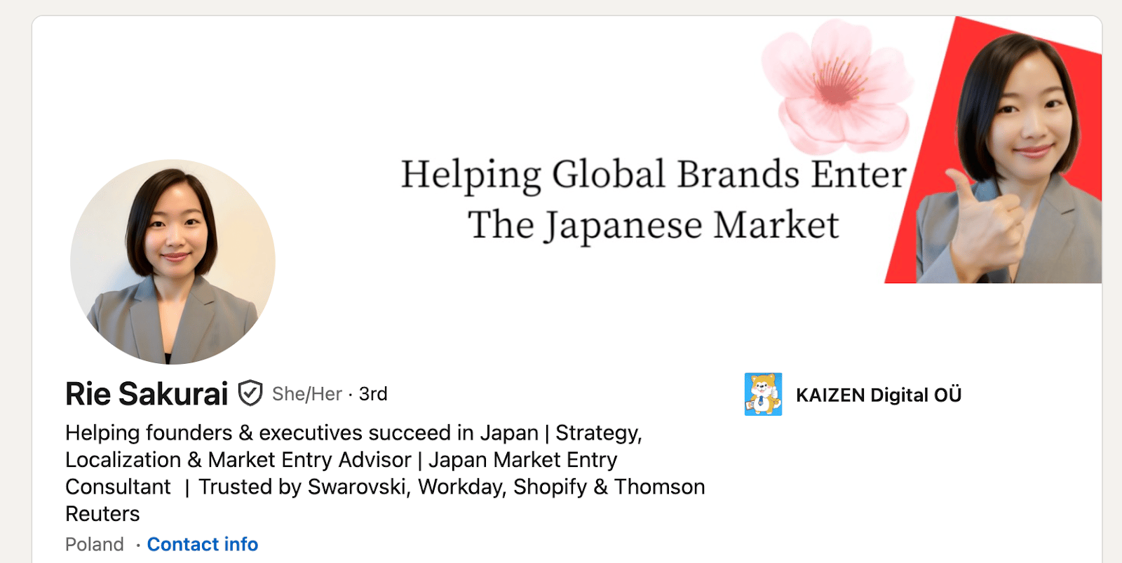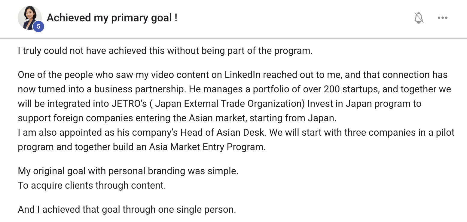 When she first joined our program, she decided to go all in on a very specific positioning: helping foreign companies enter the Japanese and Asian market.