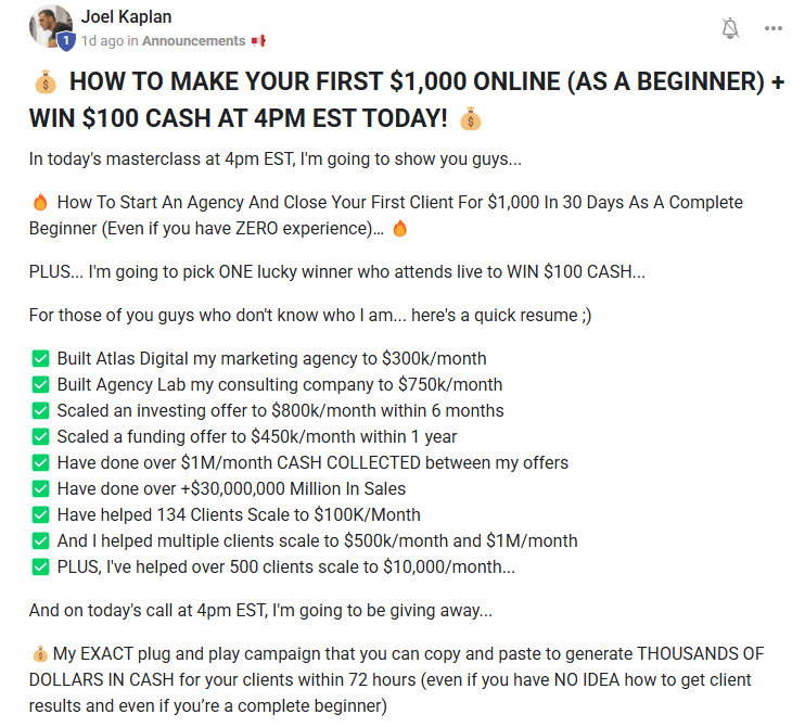 Entrepreneurial powerhouse Joel Kaplan held an exclusive live workshop on how to make your first $1,000 online. 🤑