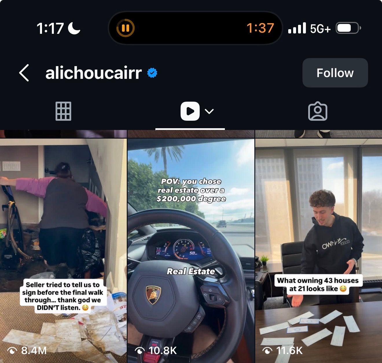 Ali, a real estate investor, hit 8.4 million views on a single video.